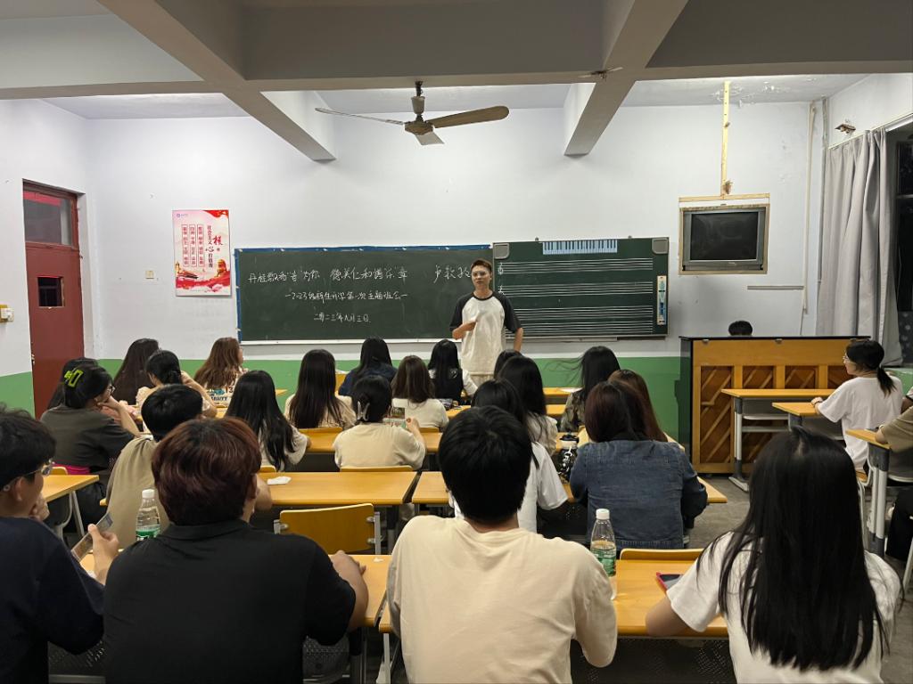 为增进师生间的相互了解,加强班级凝聚力,使同学们快速的融入班集体,尽快适应大学生活,9月3日,2023级各班在音乐楼召开了第一次新生班会,班会由各班班主任主持。