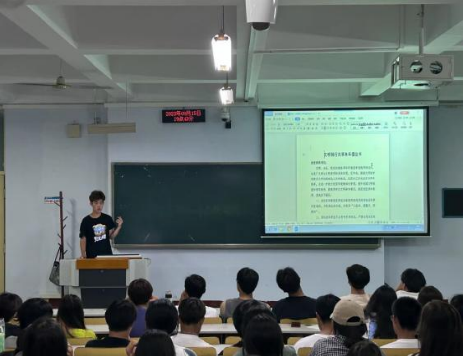 为进一步提升大学生思想道德水平和文明素养,引导学生自觉正言行、律举止、修内涵,形成大学生文明新风尚,9月15日,yl8cc永利官网在5号楼201、202教室开展“提升文明素养,争做文明标兵”主题班会。
