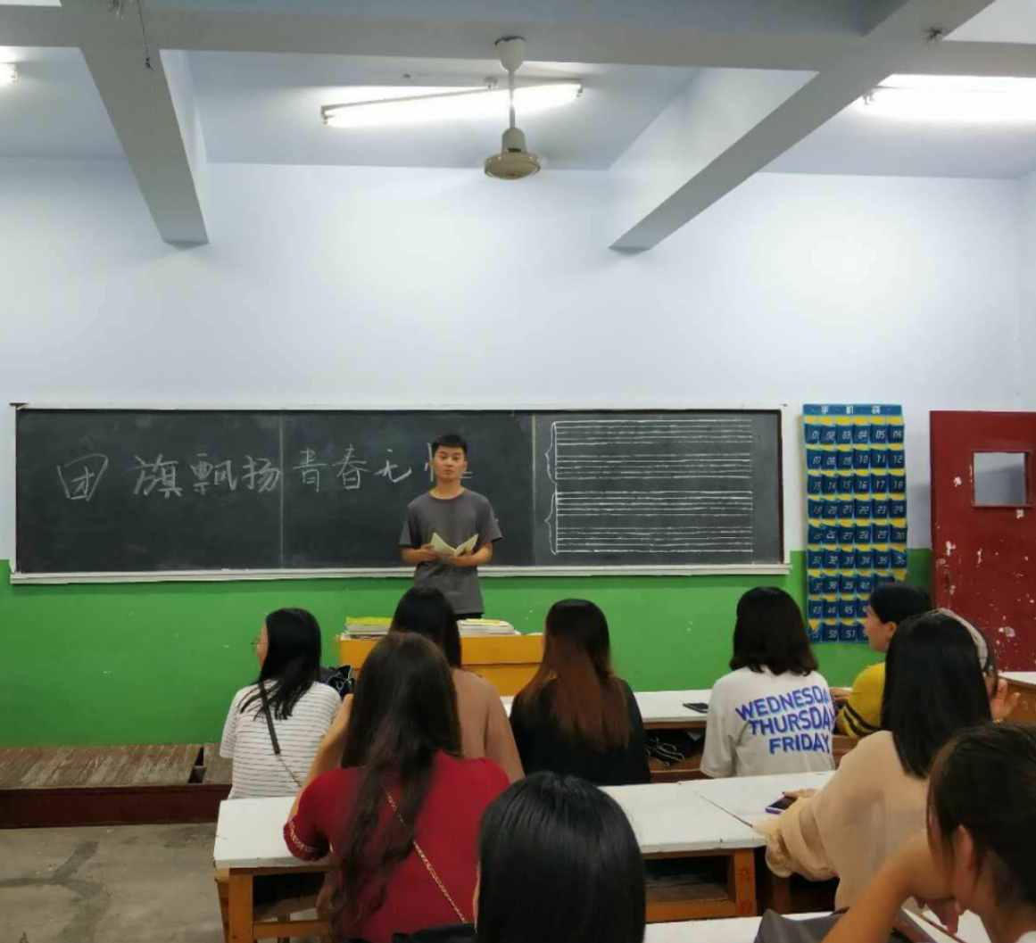 2018年 5月15号,我院2017级音学二班在1008教室开展“团旗飘扬,青春无悔”的主题班会活动。
